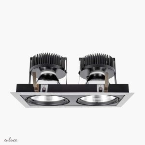SHEER Q 2X170Read moreThe downlight Sheer is designed for commercial and residential spaces, including the ability to direct the light source in one or two axes. In this way it is possible with a recessed light fixture in the ceiling, walls, tables, exhibitors or other decorative element. It can still be configured in different colors, sizes and shapes. The Q family stands by the square shape. Recessed application