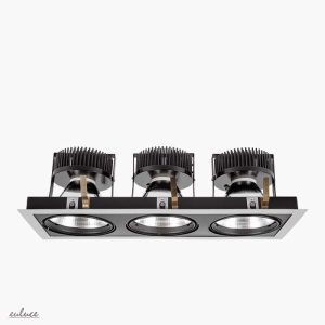 SHEER Q 3X170Read moreThe downlight’s Sheer is designed for commercial and residential spaces, including the ability to direct the light source in one or two axes. In this way it is possible with a recessed light fixture in the ceiling, walls, tables, exhibitors or other decorative element. It can still be configured in different colors, sizes and shapes. The Q family stands by the square shape. Recessed application